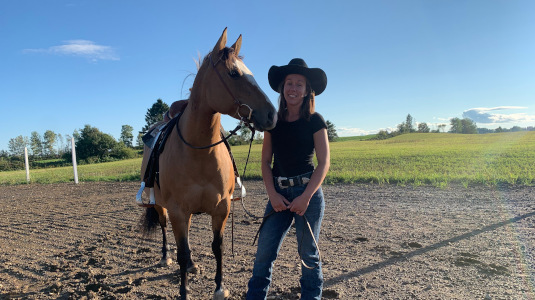 Amélie est originaire d'Amqui. Il y a quelques années (2021), elle a acheté les terres agricoles familiales ainsi que les bâtiments. Elle a rénové les infrastructures dans le but de convenir aux nouvelles normes ainsi qu'à ses besoins et ses valeurs : installations propres, fonctionnelles et sécuritaires pour le domaine équestre.